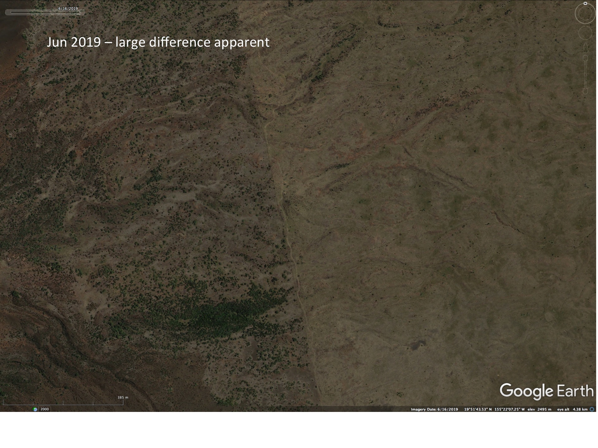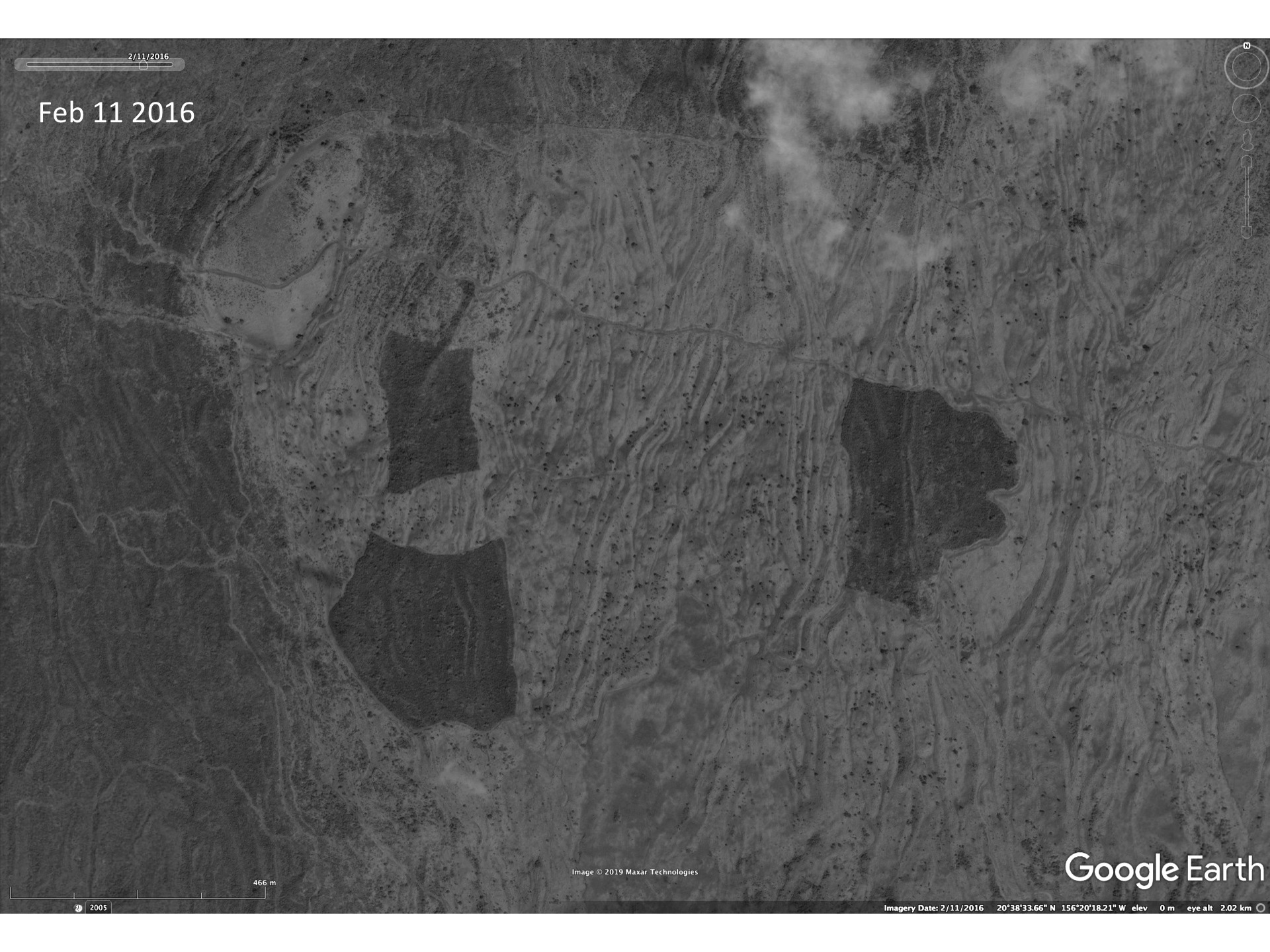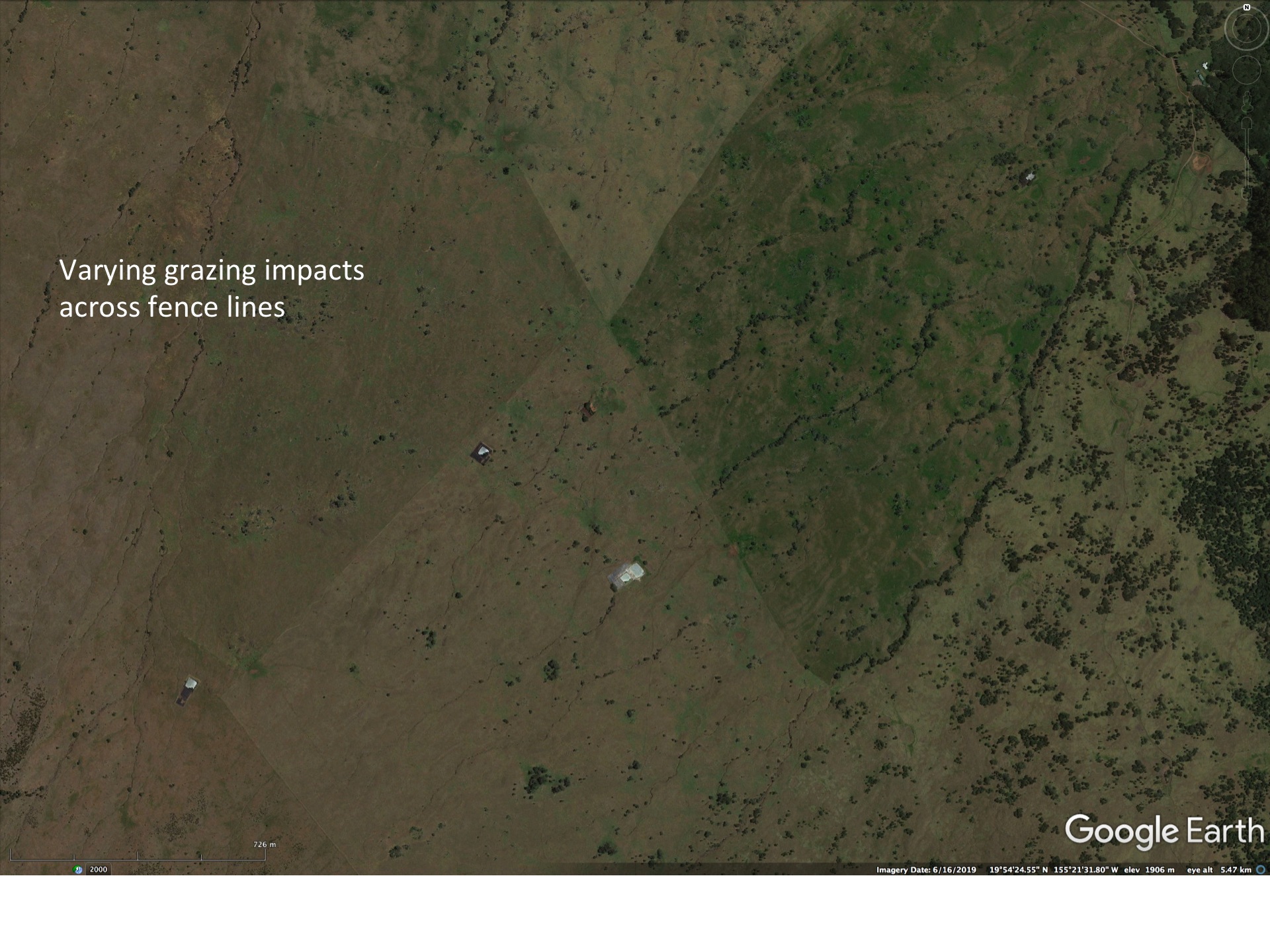 Large parts of the islands are dedicated to cattle ranching and have been for a long time. Once non-native grasses come to dominant an environment they can be periodically burned or grazed to prevent the return of the native dry (or wet) forest originally present. In fact fires in the Hawaiian cattle lands are much more common now than in the native forests of the past. Click on the first image and step through the sequences.