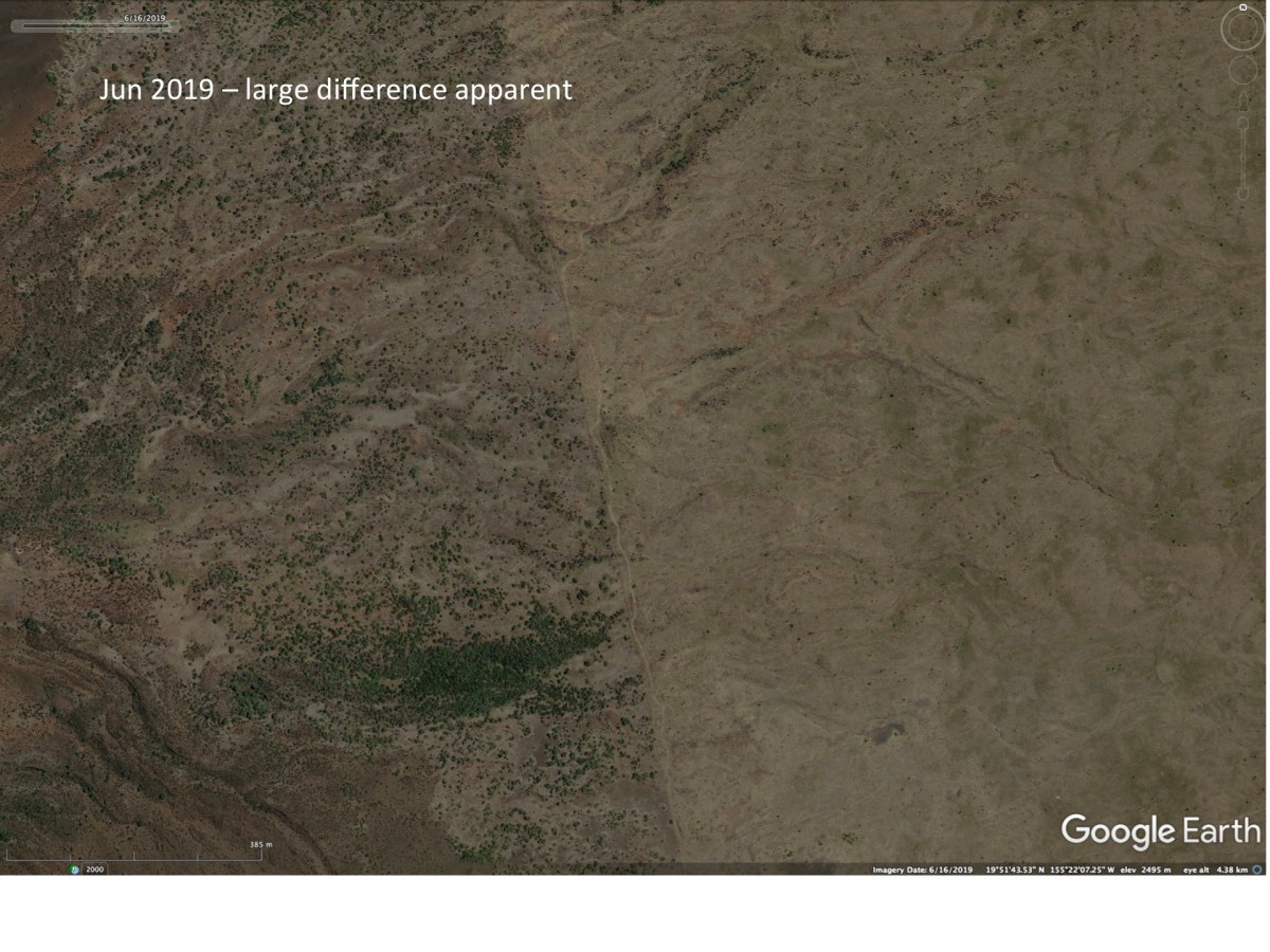 ← Previous Next → Same as previous slide except in 2019. The vegetation has grown in the forest reserve while the grazed land remains mostly grassland. Like Loading...