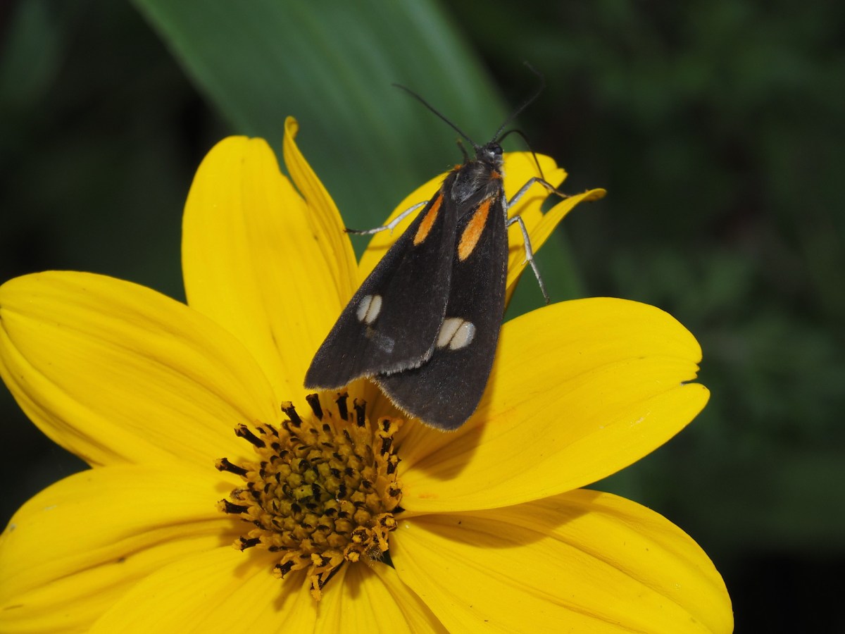 an insect on a composite flower. Ideally you want the head of the insect facing the camera and in focus, neight is present in this image. But the patterns on the wings might be sufficient to identify the species…