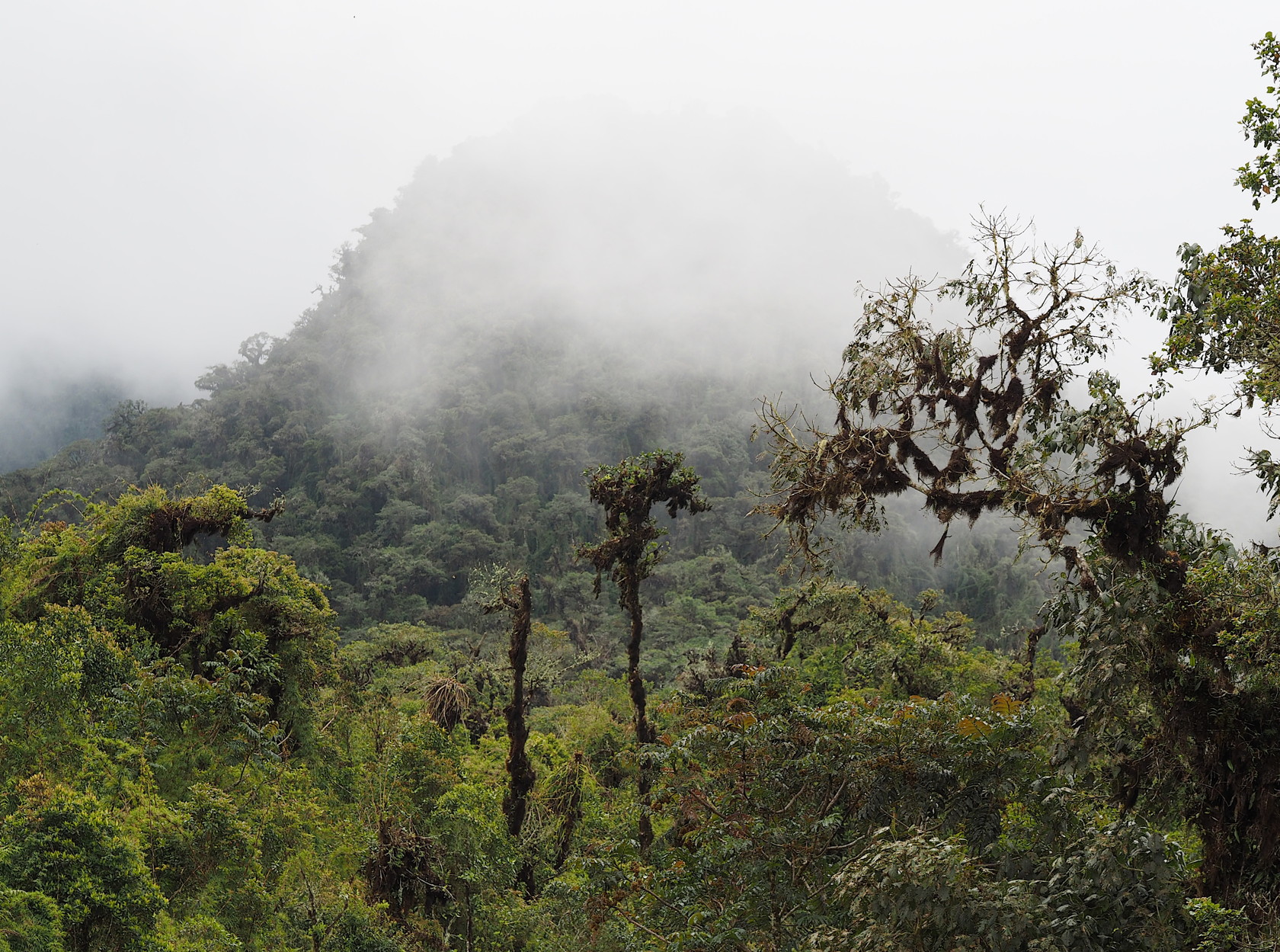 Mi interés personal era fotografiar epífitas, helechos arborescentes, el entorno forestal general (lo que distingue a los Yungas de los bosques de altura más baja, por ejemplo) y los animales que encontré. No me enfocaba en la fotografía de aves, y aunque traje mi lente de 300 mm, dadas las condiciones nubladas y la naturaleza de la mayoría de las aves en los bosques tropicales, pequeñas y de rápido movimiento, no anticipé mucho éxito. Me centré en las oportunidades de la macro fotografía y las fotos generales del bosque. Para este tipo de fotografía, utilizo con mayor frecuencia un zoom de teleobjetivo de 40-150 mm y un zoom de gran angular de 12-40 mm. Las fotos de cerca se tomaron con un lente macro de 60 mm. Todos los lentes fueron lentes Olympus “pro-series”. Uso las cámaras sin espejo Olympus (OMD-EM1) ahora debido a 1) su peso más ligero (cuerpo de la cámara y lentes) en comparación con las cámaras réflex digitales de la serie Nikon (que tengo pero rara vez uso ahora), 2) mejor estabilización de la imagen (a través del Olympus cuerpo de la cámara), 3) la pantalla de visión trasera plegable es esencial para la fotografía de bajo nivel (mis Nikon (D7100, D300s) no tienen (aunque las más nuevas sí) y 4) me gusta más la calidad de la imagen que la de Nikon. Estas son mis opiniones, las suyas pueden diferir.