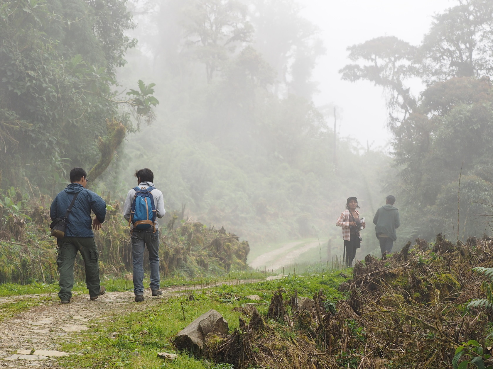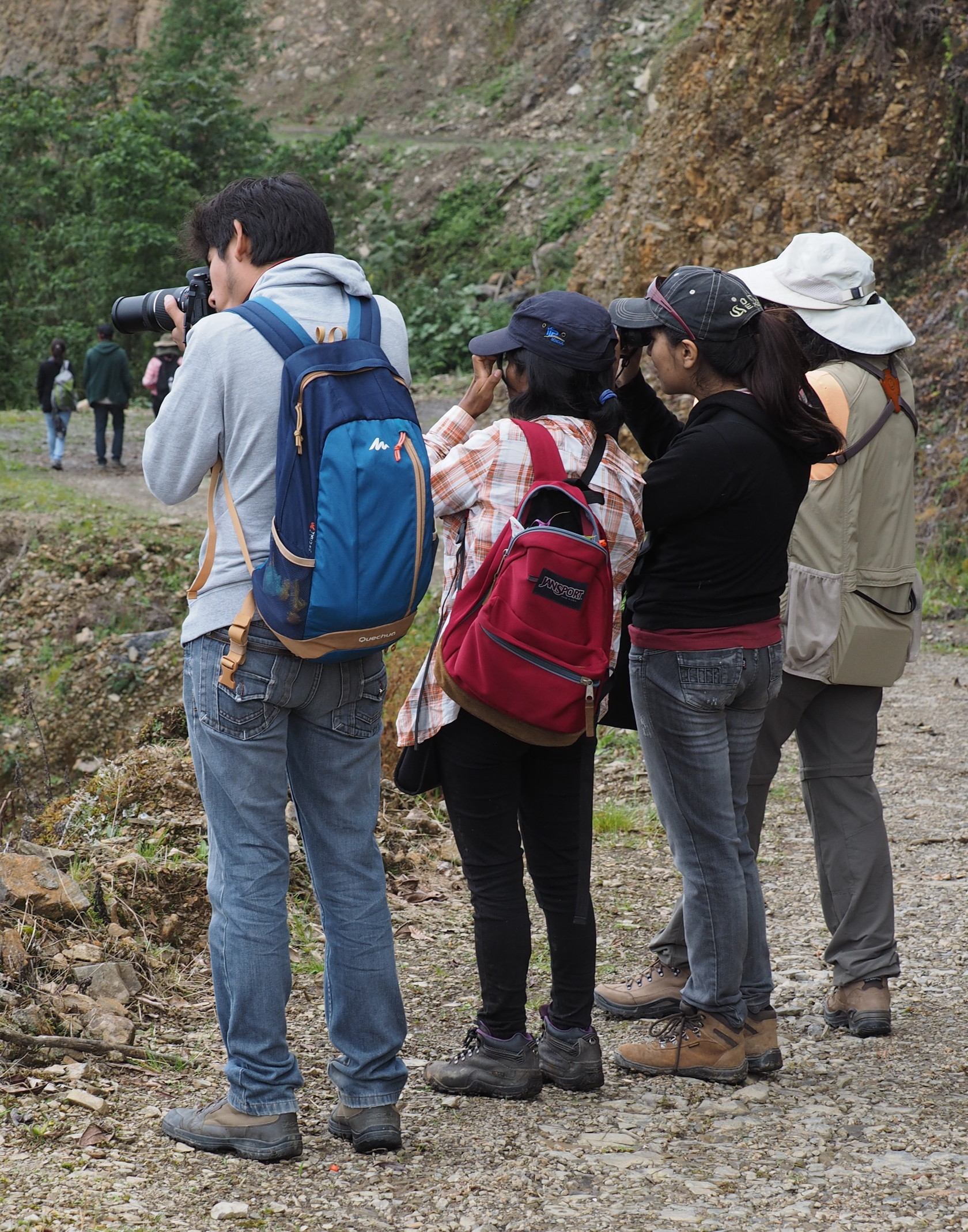 El viaje lo hicimos en un pequeño autobús, cuyo principal destino era un camino de tierra en el bosque nuboso de los Yungas que prácticamente no tenía tráfico. Pudimos caminar varias millas/kilometros a lo largo de la carretera y los estudiantes pudieron fotografiar cualquier tema que les interesara. La observación de aves también fue llevada a cabo por la mayoría de las personas. Todas las fotos en esta página, a menos que se indique lo contrario, fueron tomadas por Mike Douglas.